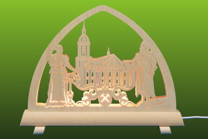 Der Leuchter (340 x 260 mm) besteht aus einem Hauptmotiv und einem abnehmbaren Vormotiv.